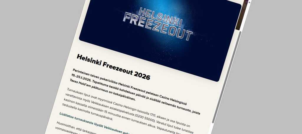 Aiemmasta ilmoituksesta poiketen kasinon viikkoturnausten ranking-finaalia ei järjestetä aivan Freezeout-viikon yhteydessä, vaan se pelataankin jo edeltävän viikonlopun lauantaina 17.1.2026.