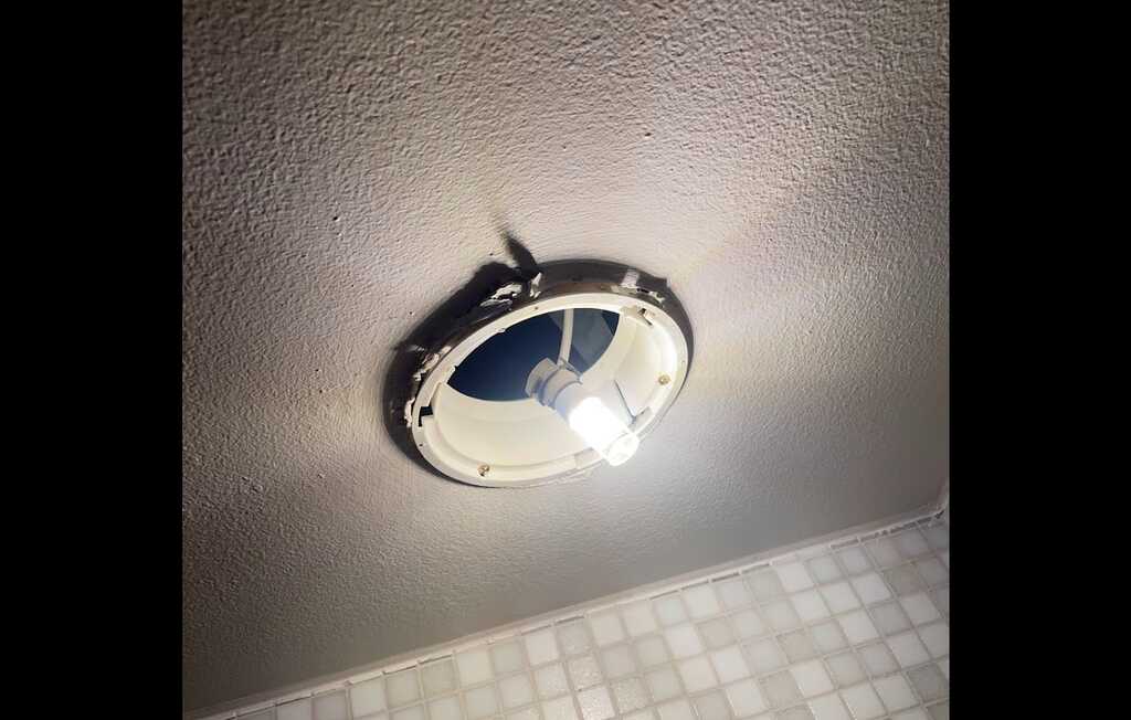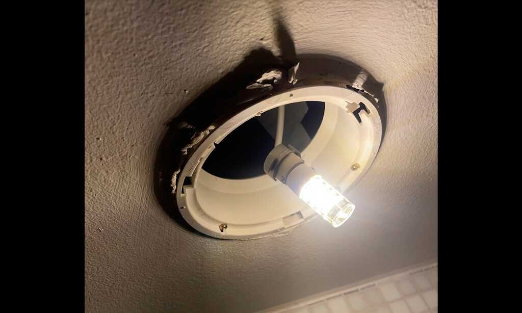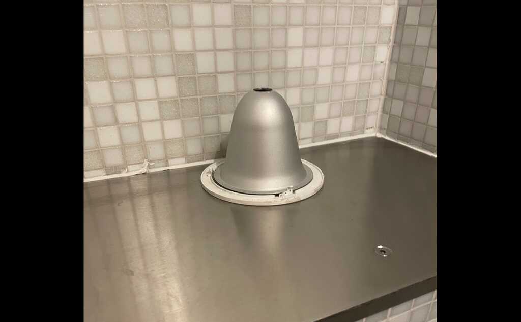 Kuva kasinon miestenvessan kopin hajotetusta valaisimesta jokaiselta käyntikerralta kunnes lamppu on korjattu.